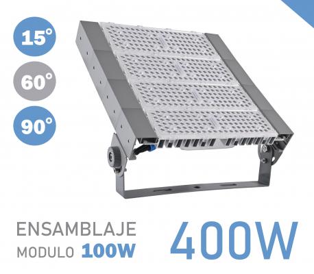 Reflector Indrustrial de 600W para canchas. Ensamblado con modulos acoplables de 100W. Potencia total de 78.000 Lúmenes.